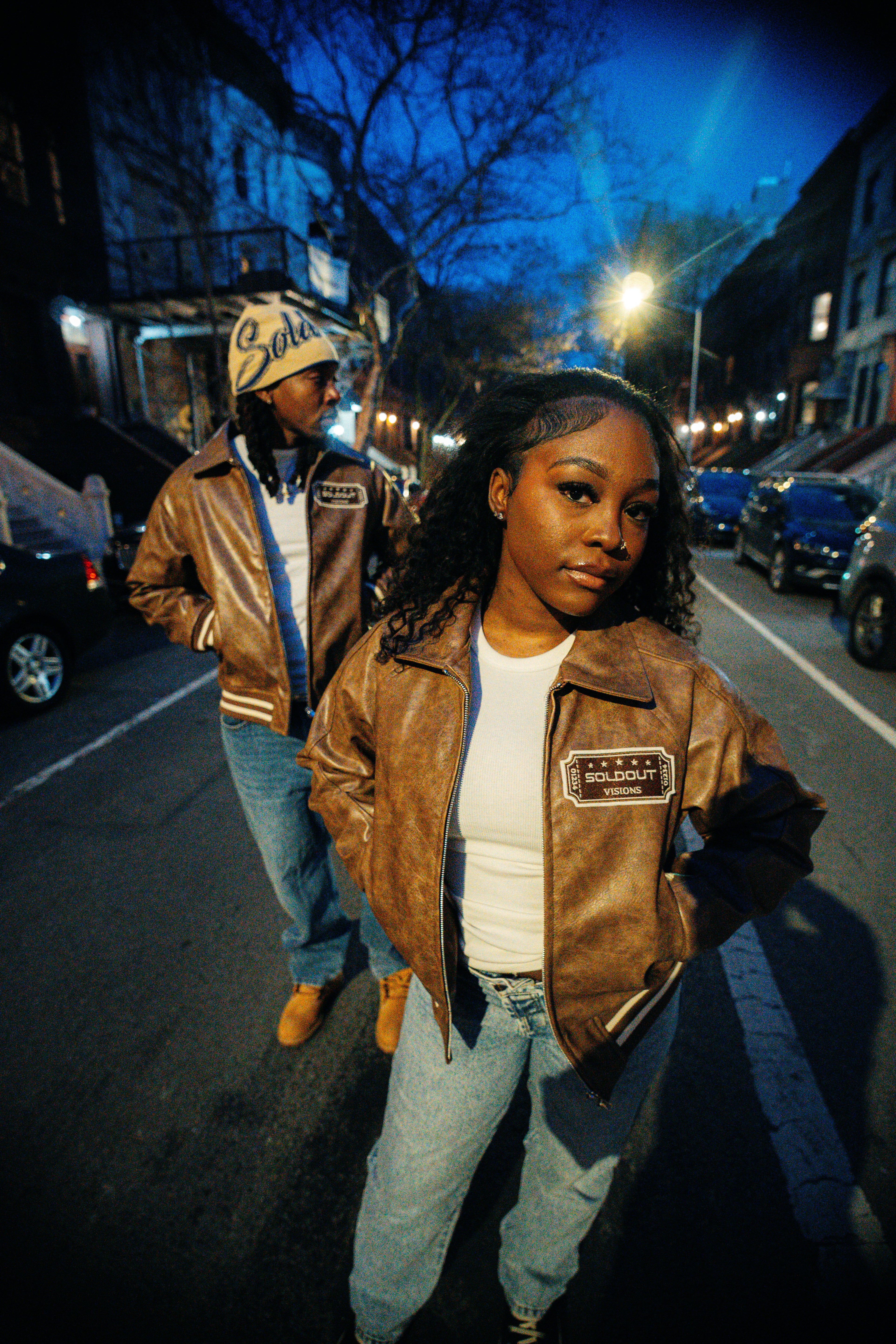 - Large embroidered patches on front & back